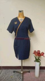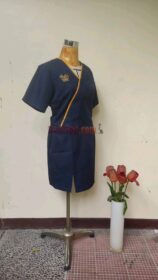 Seragam ini dibuat sesuai desain yang sudah diberikan kepada kami. Karena ini adalah pakaian untuk waitress, kami memilih bahan policotton yang tidak panas saat dipakai. Blouse dengan model overslag ini, dibuat dengan menggunakan resleting samping agar lebih mudah penggunaannya. Pada rok pendek nya ada sedikit belahan di bagian depan agak kanan agar mempermudah saat digunakan . Selain itu juga kami menggunakan karet agar lebih elastis, karena seragam ini menggunakan ukuran standart mulai dari S M L hingga XL.