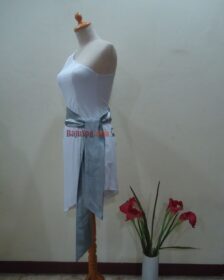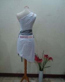 Baju Spg Usher Dress One Shoulder hubungi WA 0818 0649 6654. Desain baju yang mengikuti bentuk badan ini sangat pas dikenakan untuk acara peluncuran produk baru, ground breaking, dan acara ceremonial lainnya. Kesan seksi elegan melekat dengan potongan baju asimetris warna putih, dibalut obi warna silver atau abu teran.